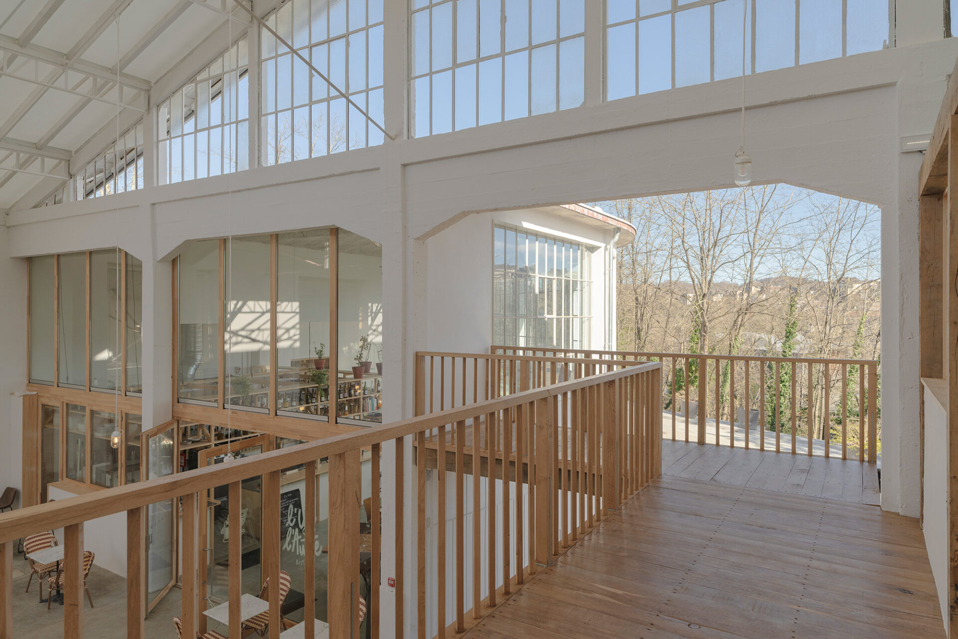 👉 Résultat : un espace lumineux et respirant, transformé en jardin intérieur accueillant de nouveaux usages urbains.